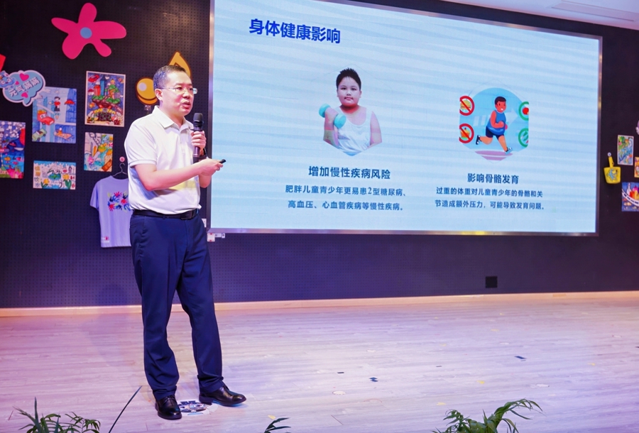 9月16日,在上海市卫生健康委员会指导下,由上海市爱国卫生运动委员会办公室和上海市健康促进中心主办,金山区卫生健康委员会、金山区教育局、金山区疾病预防控制中心(金山区卫生健康监督所)、金山区爱国卫生和健康促进中心和金山区牙病防治所联合承办的“‘科学运动 健康体重’全民健康生活方式宣传月”上海健康大讲堂暨上海市青苹果之家进校园专场活动中,上海交通大学医学院附属上海儿童医学中心健康管理中心主任方拴锋用满满的干货为现场师生和家长解锁儿童体重管理的密码。